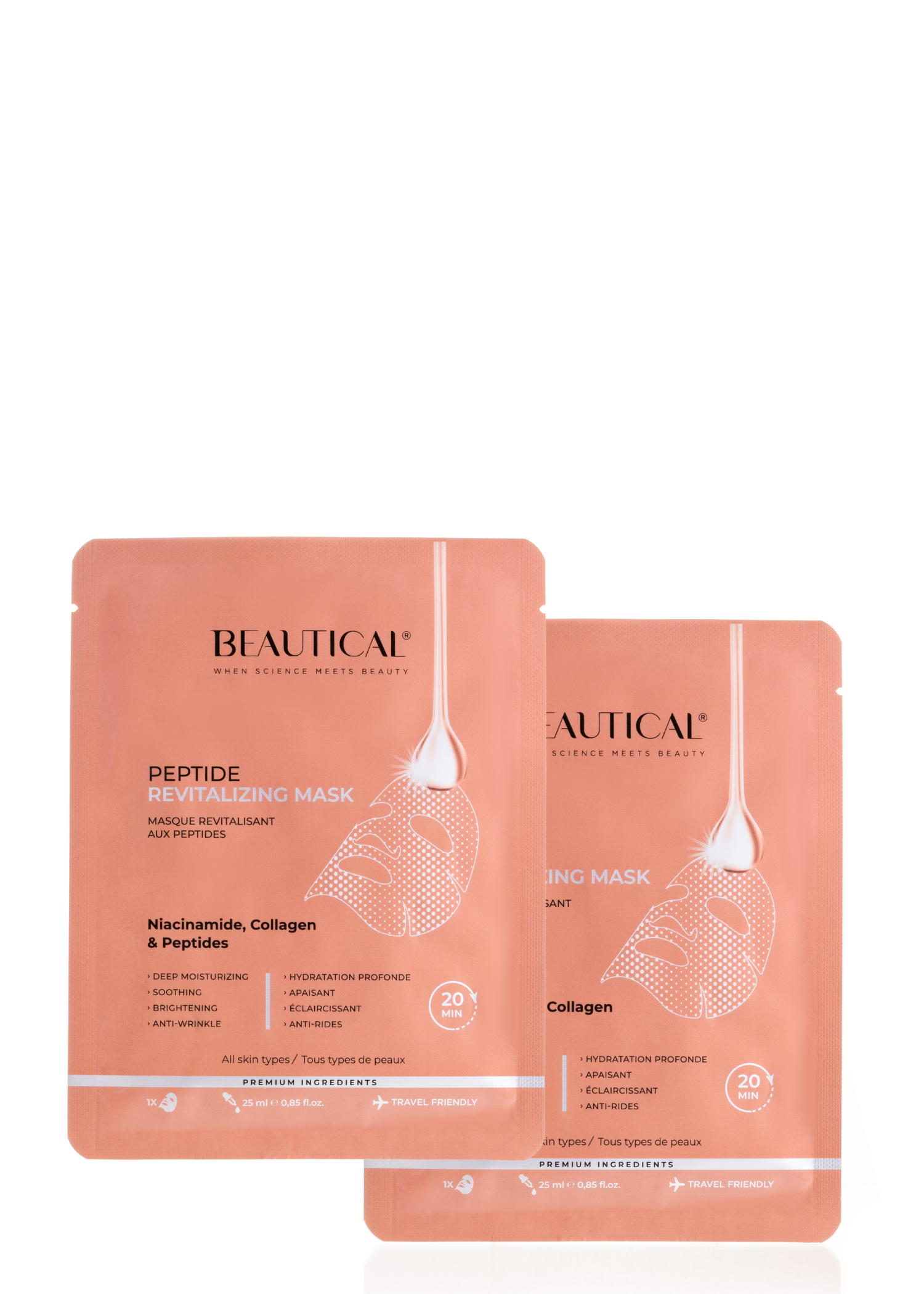 BEAUTICAL Peptydowa maska do twarzy w płacie, 2 szt.