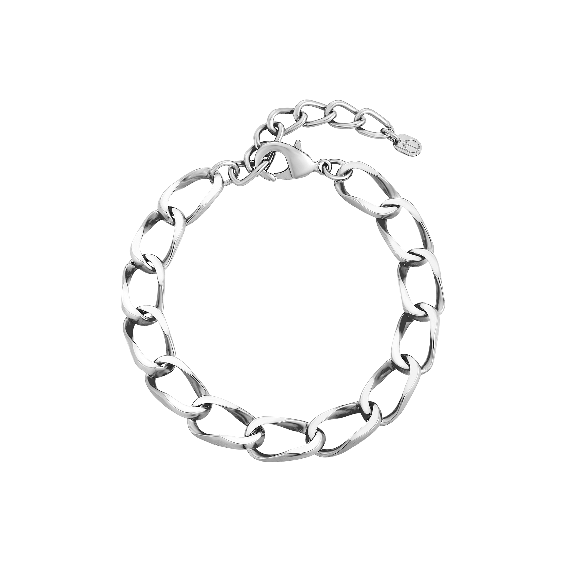 Nowoczesna forma klasycznego stylu bransoletki typu pancerka z dużymi, szerokimi ogniwami w kolorze złota lub srebra.