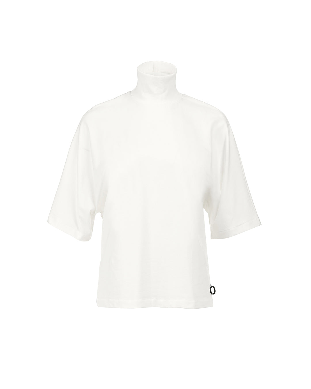 T-shirt z wysokim, dopasowanym golfem, kimonowymi rękawami, bez szwów na ramionach.