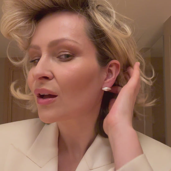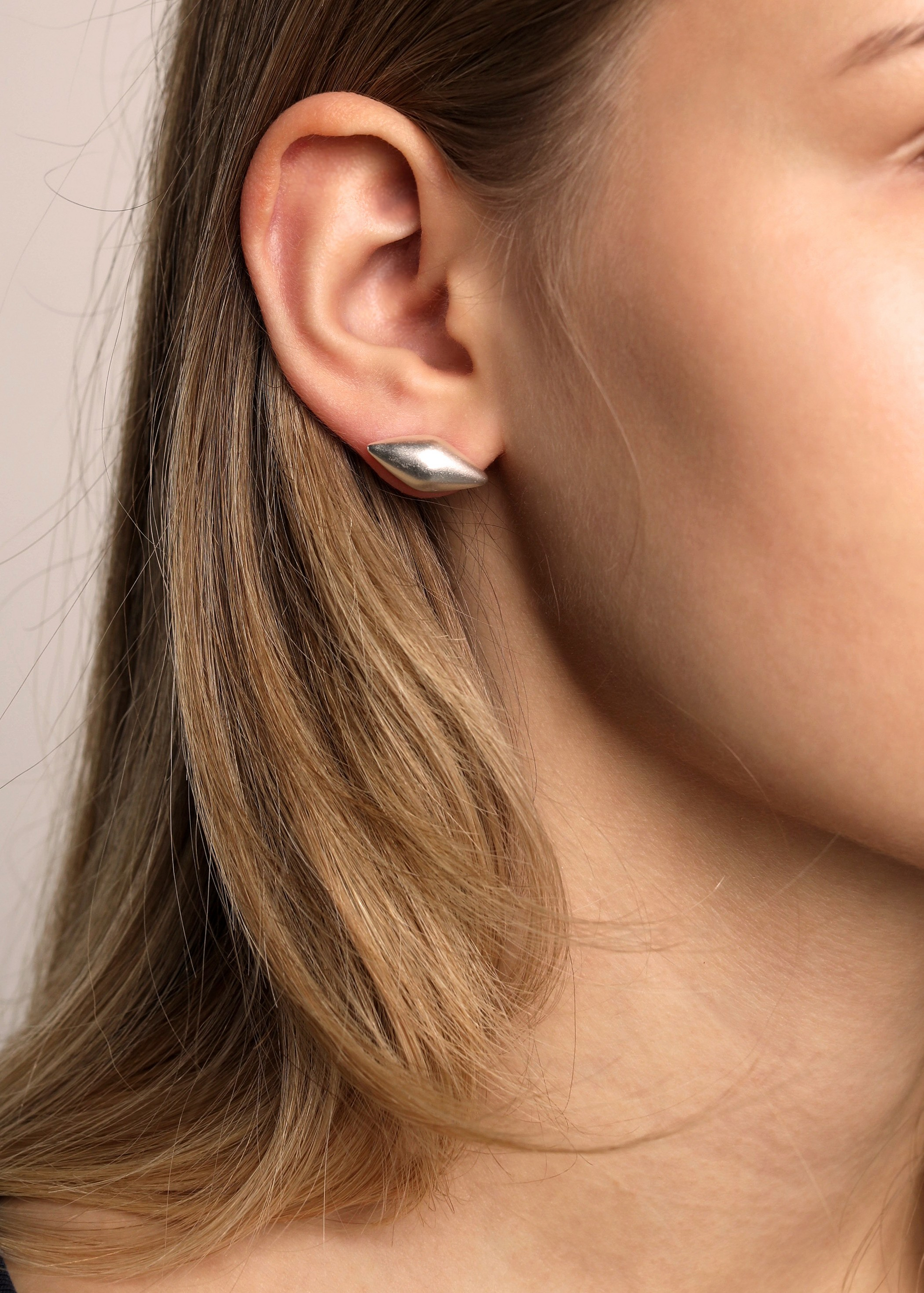 Kolczyki na sztyfcie w kształcie podwójnego ćwieka.