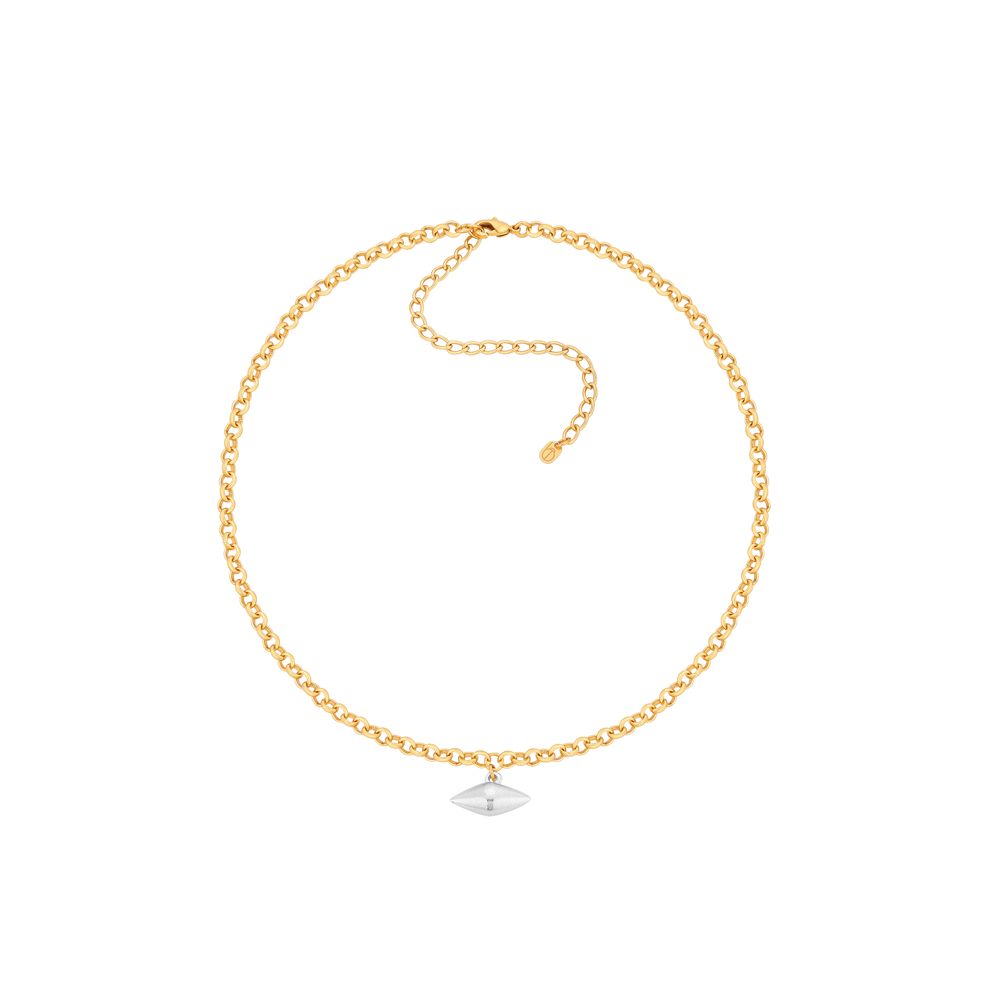 Łańcuszek dostępny w kolorze złota z podwójnym ćwiekiem w kolorze srebra.